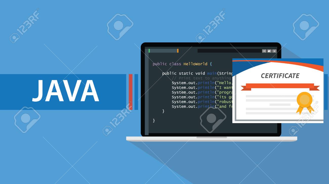 Java Programming Language Certificate With Laptop And Code